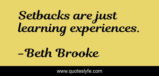 "Beth Brooke Quotes." Quoteslyfe.com, 2025. Sat. 06 Dec. 2025. <https://www.quoteslyfe.com/quote/Setbacks-are-just-learning-experiences-300137>.