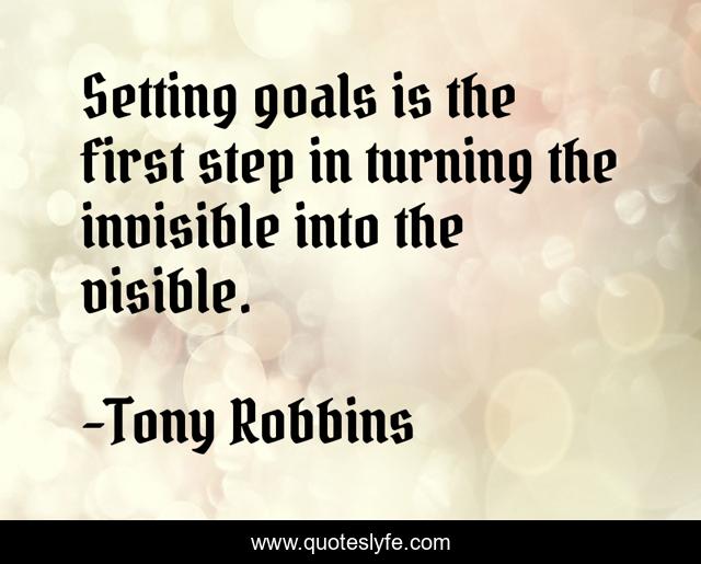 This page presents the quote "Setting goals is the first step in turning the invisible into the visible.". Author of this quote is Tony Robbins. This quote is about quotes-to-live-by, inspirational, enthusiasm,.