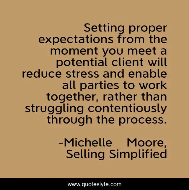 "Michelle Moore, Selling Simplified Quotes." Quoteslyfe.com, 2025. Sat. 06 Dec. 2025. <https://www.quoteslyfe.com/quote/Setting-proper-expectations-from-the-moment-you-228449>.