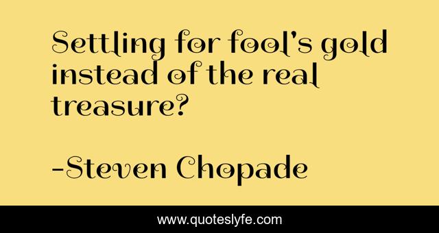 This page presents the quote "Settling for fool's gold instead of the real treasure?". Author of this quote is Steven Chopade. .