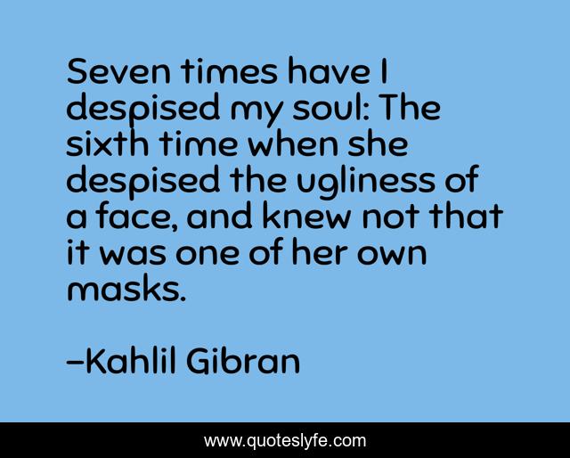 "Kahlil Gibran Quotes." Quoteslyfe.com, 2025. Tue. 09 Dec. 2025. <https://www.quoteslyfe.com/quote/Seven-times-have-I-despised-my-soul-62843>.