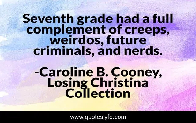 This page presents the quote "Seventh grade had a full complement of creeps, weirdos, future criminals, and nerds.". Author of this quote is Caroline B. Cooney, Losing Christina Collection. .