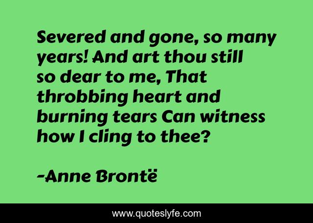 This page presents the quote "Severed and gone, so many years! And art thou still so dear to me, That throbbing heart and burning tears Can witness how I cling to thee?". Author of this quote is Anne Brontë. This quote is about loss, poetry,.