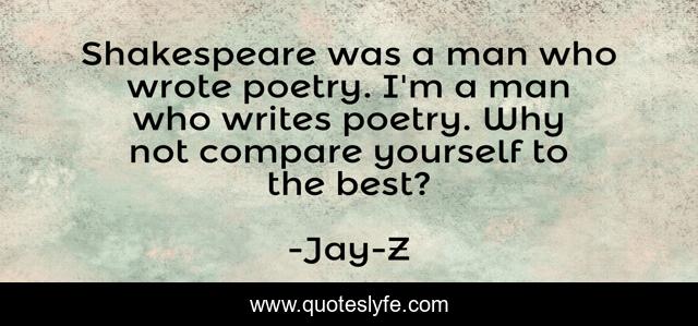 This page presents the quote "Shakespeare was a man who wrote poetry. I'm a man who writes poetry. Why not compare yourself to the best?". Author of this quote is Jay-Z. This quote is about man, best, yourself,.
