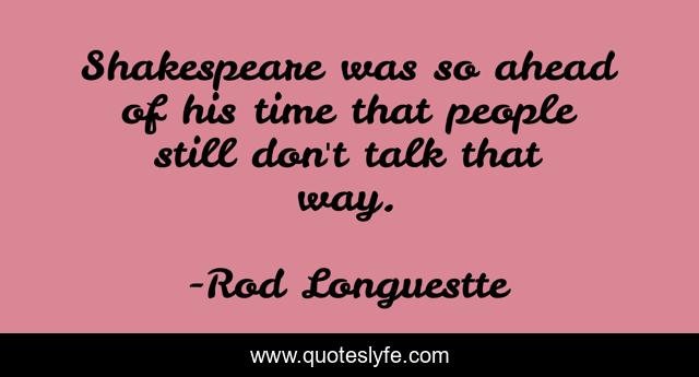 This page presents the quote "Shakespeare was so ahead of his time that people still don't talk that way.". Author of this quote is Rod Longuestte. This quote is about humorous, english-language, shakespeare,.