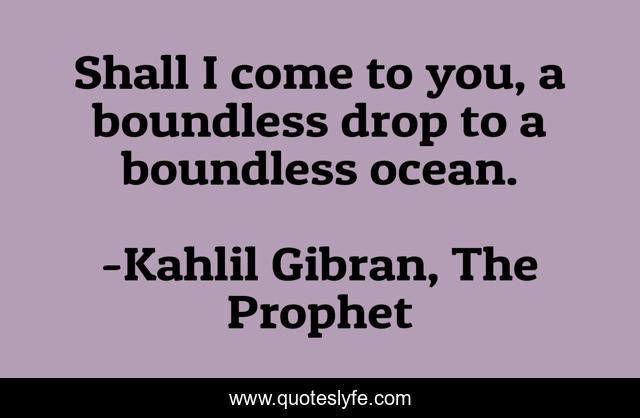 This page presents the quote "Shall I come to you, a boundless drop to a boundless ocean.". Author of this quote is Kahlil Gibran, The Prophet. This quote is about water, boundless, sea, ocean,.