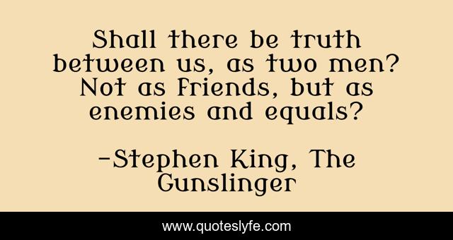 This page presents the quote "Shall there be truth between us, as two men? Not as friends, but as enemies and equals?". Author of this quote is Stephen King, The Gunslinger. .