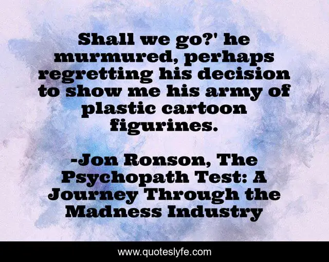 "Jon Ronson, The Psychopath Test: A Journey Through the Madness Industry Quotes." Quoteslyfe.com, 2025. Sat. 06 Dec. 2025. <https://www.quoteslyfe.com/quote/Shall-we-go-he-murmured-perhaps-regretting-103301>.