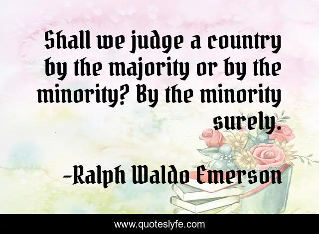 This page presents the quote "Shall we judge a country by the majority or by the minority? By the minority surely.". Author of this quote is Ralph Waldo Emerson. .