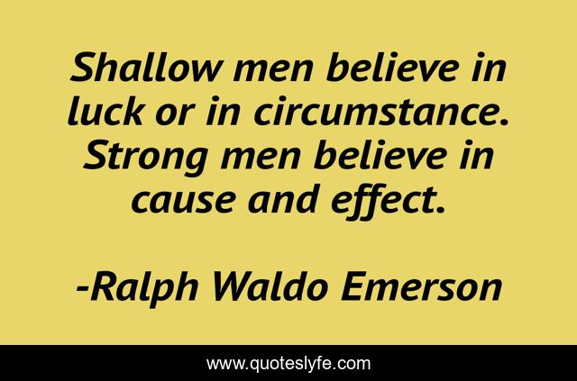 This page presents the quote "Shallow men believe in luck or in circumstance. Strong men believe in cause and effect.". Author of this quote is Ralph Waldo Emerson. This quote is about causality, necessity, causation, chance, kalam-cosmological-argument, inspirational, serendipity, enthusiasm, darwinism,.