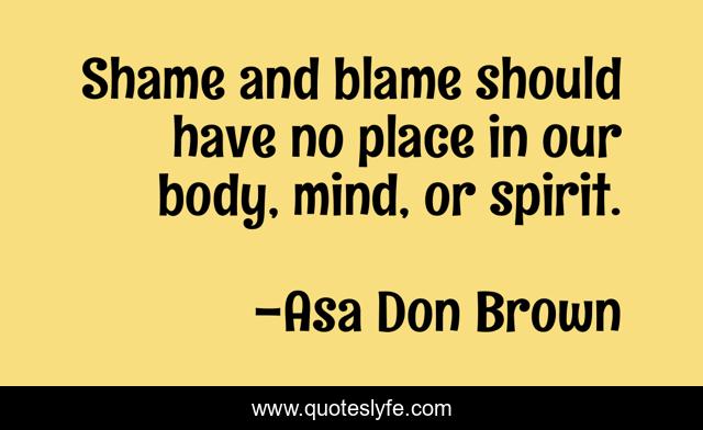 This page presents the quote "Shame and blame should have no place in our body, mind, or spirit.". Author of this quote is Asa Don Brown. This quote is about confidence, psychology, freedom, motivational, behaviour, spirituality, attitude, optimistic, inspirational,.