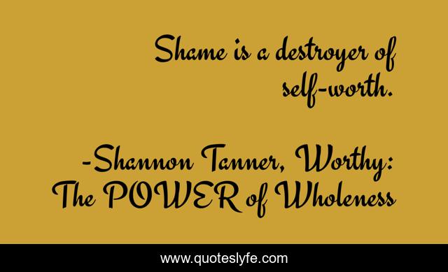 This page presents the quote "Shame is a destroyer of self-worth.". Author of this quote is Shannon Tanner, Worthy: The POWER of Wholeness. This quote is about shame, self-worth,.
