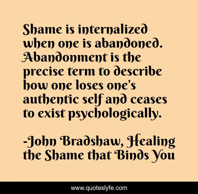 "John Bradshaw, Healing the Shame that Binds You Quotes." Quoteslyfe.com, 2025. Fri. 05 Dec. 2025. <https://www.quoteslyfe.com/quote/Shame-is-internalized-when-one-is-abandoned-103837>.