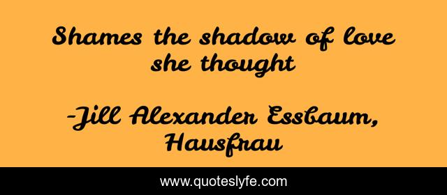 This page presents the quote "Shames the shadow of love she thought". Author of this quote is Jill Alexander Essbaum, Hausfrau. .