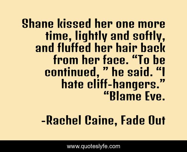 This page presents the quote "Shane kissed her one more time, lightly and softly, and fluffed her hair back from her face. “To be continued, ” he said. “I hate cliff-hangers.” “Blame Eve.". Author of this quote is Rachel Caine, Fade Out. This quote is about morganville-vampires, fade-out, romance, shane-and-claire,.