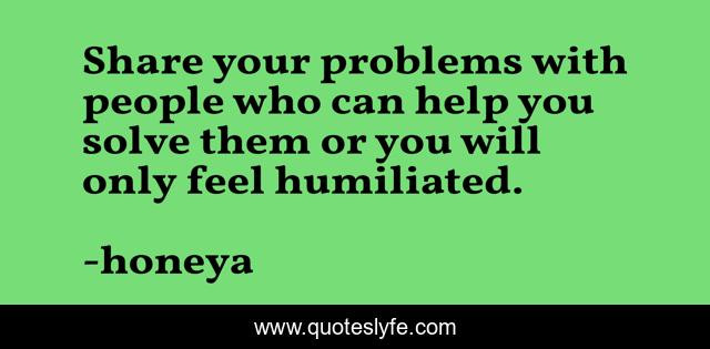 This page presents the quote "Share your problems with people who can help you solve them or you will only feel humiliated.". Author of this quote is honeya. This quote is about lessons, problem, relationships-advice, life,.