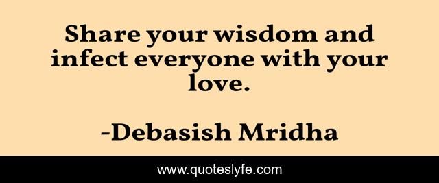 This page presents the quote "Share your wisdom and infect everyone with your love.". Author of this quote is Debasish Mridha. This quote is about love, philosophy, debasish-mridha, wisdom, quotes, debasish-mridha-md, inspirational, enthusiasm, affection,.