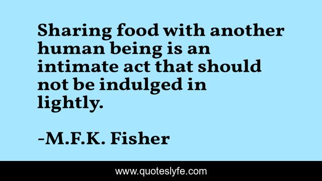 "M.F.K. Fisher Quotes." Quoteslyfe.com, 2025. Sat. 06 Dec. 2025. <https://www.quoteslyfe.com/quote/Sharing-food-with-another-human-being-is-167872>.
