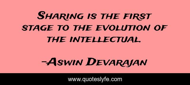 This page presents the quote "Sharing is the first stage to the evolution of the intellectual.". Author of this quote is Aswin Devarajan. This quote is about wise, knowledge, intellectual, inspirational, enthusiasm, intelligent, smart,.