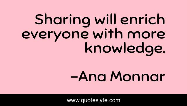This page presents the quote "Sharing will enrich everyone with more knowledge.". Author of this quote is Ana Monnar. This quote is about sharing, knowledge, learning,.