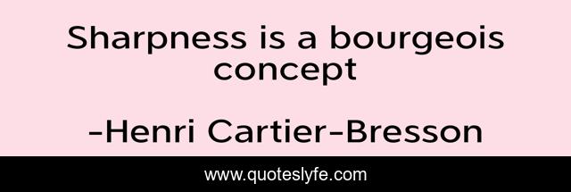 "Henri Cartier-Bresson Quotes." Quoteslyfe.com, 2025. Mon. 08 Dec. 2025. <https://www.quoteslyfe.com/quote/Sharpness-is-a-bourgeois-concept-238634>.