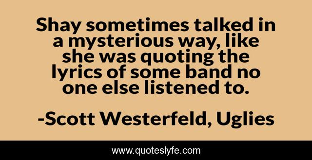 "Scott Westerfeld, Uglies Quotes." Quoteslyfe.com, 2025. Sun. 14 Dec. 2025. <https://www.quoteslyfe.com/quote/Shay-sometimes-talked-in-a-mysterious-way-89896>.