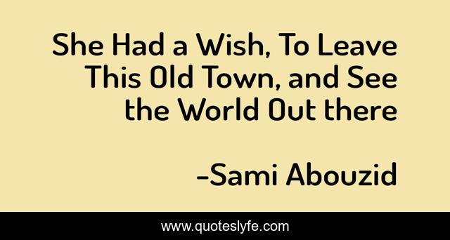 This page presents the quote "She Had a Wish, To Leave This Old Town, and See the World Out there". Author of this quote is Sami Abouzid. This quote is about love, affection,.