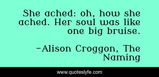 This page presents the quote "She ached: oh, how she ached. Her soul was like one big bruise.". Author of this quote is Alison Croggon, The Naming. This quote is about beautiful-writing, soul, hurt,.