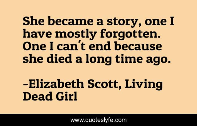 This page presents the quote "She became a story, one I have mostly forgotten. One I can't end because she died a long time ago.". Author of this quote is Elizabeth Scott, Living Dead Girl. .