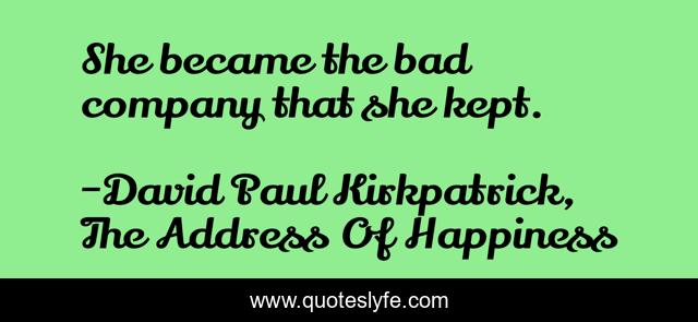 "David Paul Kirkpatrick, The Address Of Happiness Quotes." Quoteslyfe.com, 2025. Sat. 06 Dec. 2025. <https://www.quoteslyfe.com/quote/She-became-the-bad-company-that-she-124844>.