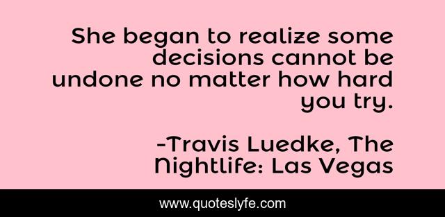 "Travis Luedke, The Nightlife: Las Vegas Quotes." Quoteslyfe.com, 2025. Fri. 05 Dec. 2025. <https://www.quoteslyfe.com/quote/She-began-to-realize-some-decisions-cannot-223883>.
