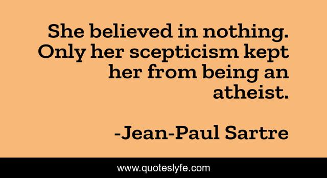 This page presents the quote "She believed in nothing. Only her scepticism kept her from being an atheist.". Author of this quote is Jean-Paul Sartre. This quote is about atheism, skepticism, scepticism, belief,.