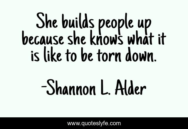 "Shannon L. Alder Quotes." Quoteslyfe.com, 2025. Mon. 08 Dec. 2025. <https://www.quoteslyfe.com/quote/She-builds-people-up-because-she-knows-258968>.