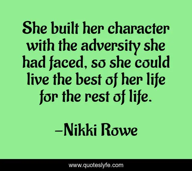 "Nikki Rowe Quotes." Quoteslyfe.com, 2025. Fri. 05 Dec. 2025. <https://www.quoteslyfe.com/quote/She-built-her-character-with-the-adversity-173654>.