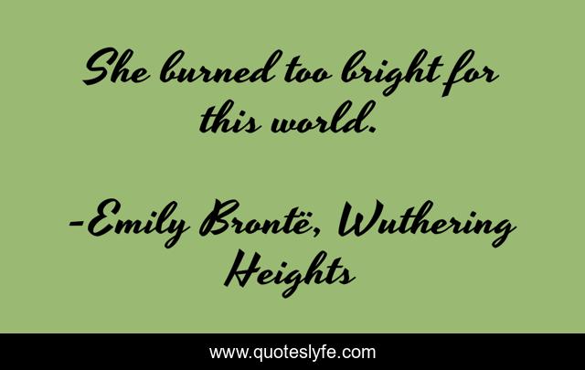 "Emily Brontë, Wuthering Heights Quotes." Quoteslyfe.com, 2025. Mon. 08 Dec. 2025. <https://www.quoteslyfe.com/quote/She-burned-too-bright-for-this-world-2072>.