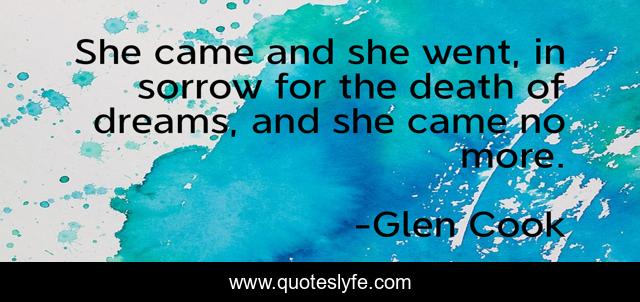 This page presents the quote "She came and she went, in sorrow for the death of dreams, and she came no more.". Author of this quote is Glen Cook. .