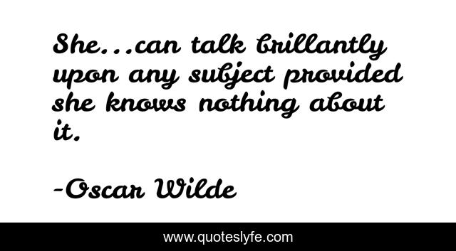 "Oscar Wilde Quotes." Quoteslyfe.com, 2025. Mon. 08 Dec. 2025. <https://www.quoteslyfe.com/quote/She-can-talk-brillantly-upon-any-subject-243395>.