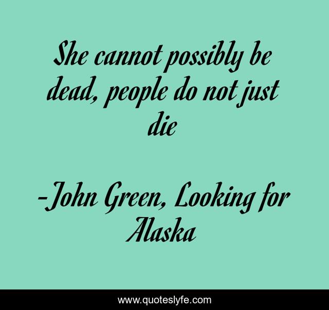 "John Green, Looking for Alaska Quotes." Quoteslyfe.com, 2025. Fri. 05 Dec. 2025. <https://www.quoteslyfe.com/quote/She-cannot-possibly-be-dead-people-do-21429>.