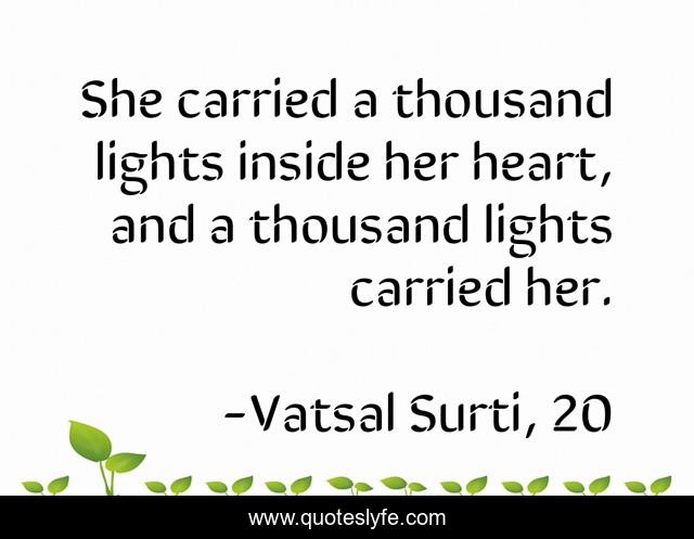 This page presents the quote "She carried a thousand lights inside her heart, and a thousand lights carried her.". Author of this quote is Vatsal Surti, 20. This quote is about heart, girl, lights, women,.