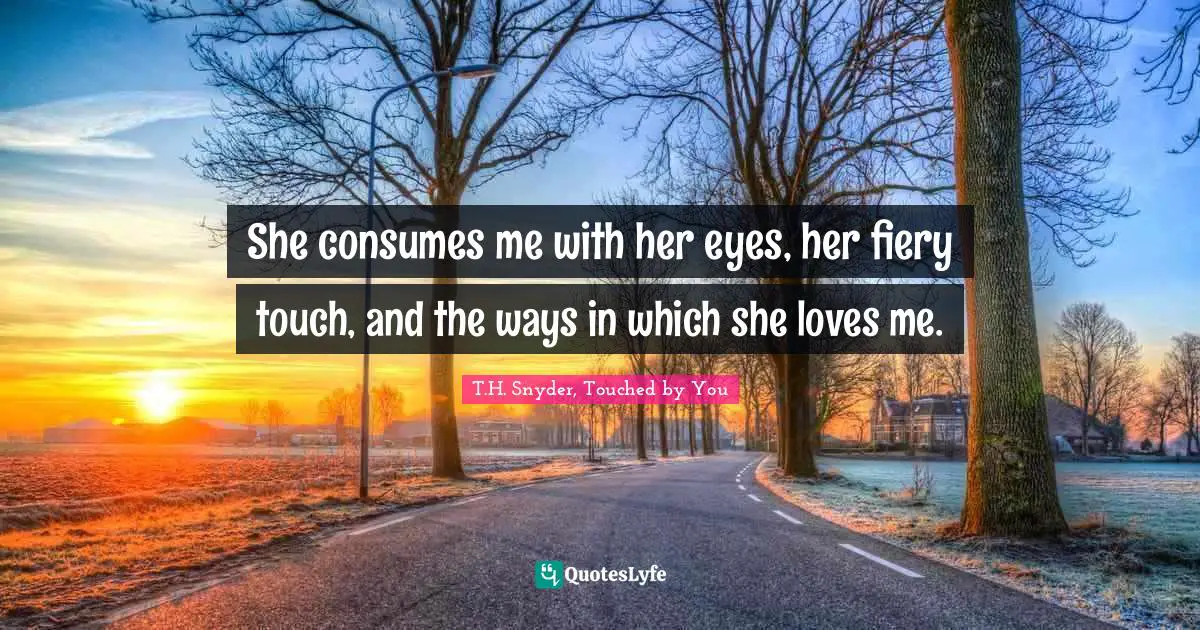 "T.H. Snyder, Touched by You Quotes." Quoteslyfe.com, 2025. Wed. 24 Dec. 2025. <https://www.quoteslyfe.com/quote/She-consumes-me-with-her-eyes-her-155401>.