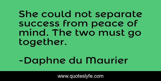 This page presents the quote "She could not separate success from peace of mind. The two must go together.". Author of this quote is Daphne du Maurier. This quote is about peace, mind,.