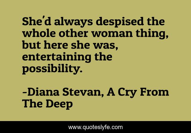 This page presents the quote "She'd always despised the whole other woman thing, but here she was, entertaining the possibility.". Author of this quote is Diana Stevan, A Cry From The Deep. This quote is about mystery, romance, time-slipping,.