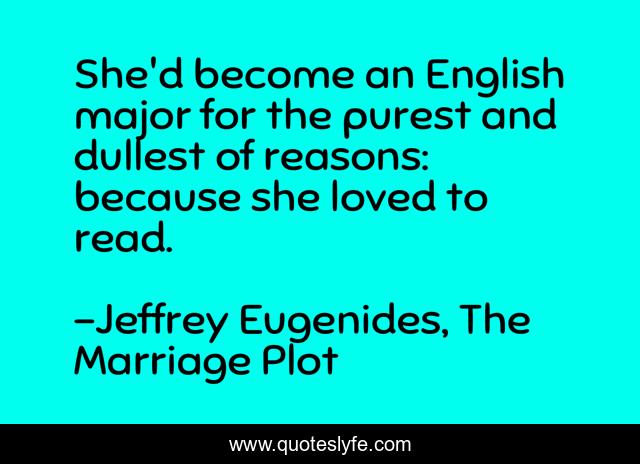 "Jeffrey Eugenides, The Marriage Plot Quotes." Quoteslyfe.com, 2025. Tue. 09 Dec. 2025. <https://www.quoteslyfe.com/quote/She-d-become-an-English-major-for-254859>.