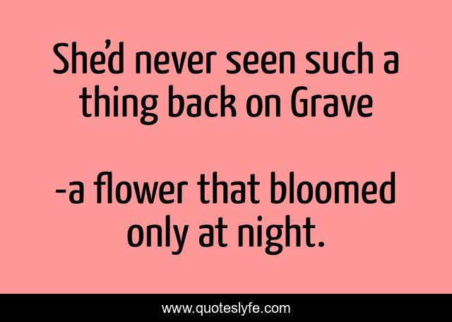 "a flower that bloomed only at night. Quotes." Quoteslyfe.com, 2025. Mon. 08 Dec. 2025. <https://www.quoteslyfe.com/quote/She-d-never-seen-such-a-thing-246872>.