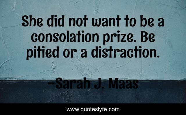 This page presents the quote "She did not want to be a consolation prize. Be pitied or a distraction.". Author of this quote is Sarah J. Maas. This quote is about nesryn-faliq, strength,.