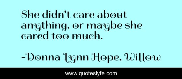 "Donna Lynn Hope, Willow Quotes." Quoteslyfe.com, 2025. Tue. 09 Dec. 2025. <https://www.quoteslyfe.com/quote/She-didn-t-care-about-anything-or-179136>.
