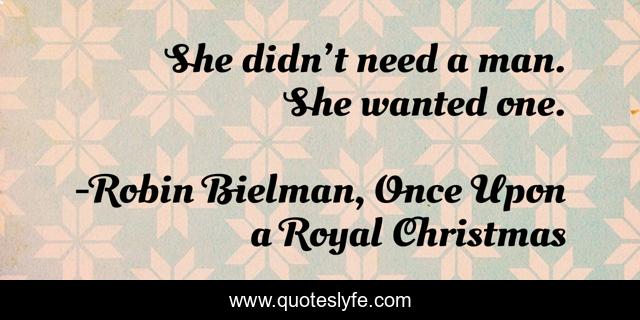 This page presents the quote "She didn’t need a man. She wanted one.". Author of this quote is Robin Bielman, Once Upon a Royal Christmas. This quote is about royalty-romance, contemporary-romance, small-town-romance, holiday-romance, christmas-romance, romance-with-a-prince,.