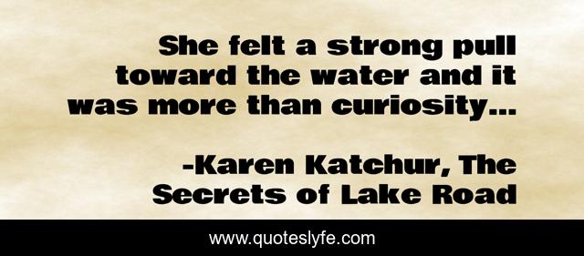 This page presents the quote "She felt a strong pull toward the water and it was more than curiosity…". Author of this quote is Karen Katchur, The Secrets of Lake Road. This quote is about mystery, suspense, lake, the-secrets-of-lake-road,.