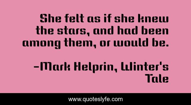 This page presents the quote "She felt as if she knew the stars, and had been among them, or would be.". Author of this quote is Mark Helprin, Winter's Tale. .