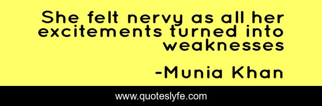 "Munia Khan Quotes." Quoteslyfe.com, 2025. Mon. 08 Dec. 2025. <https://www.quoteslyfe.com/quote/She-felt-nervy-as-all-her-excitements-242230>.